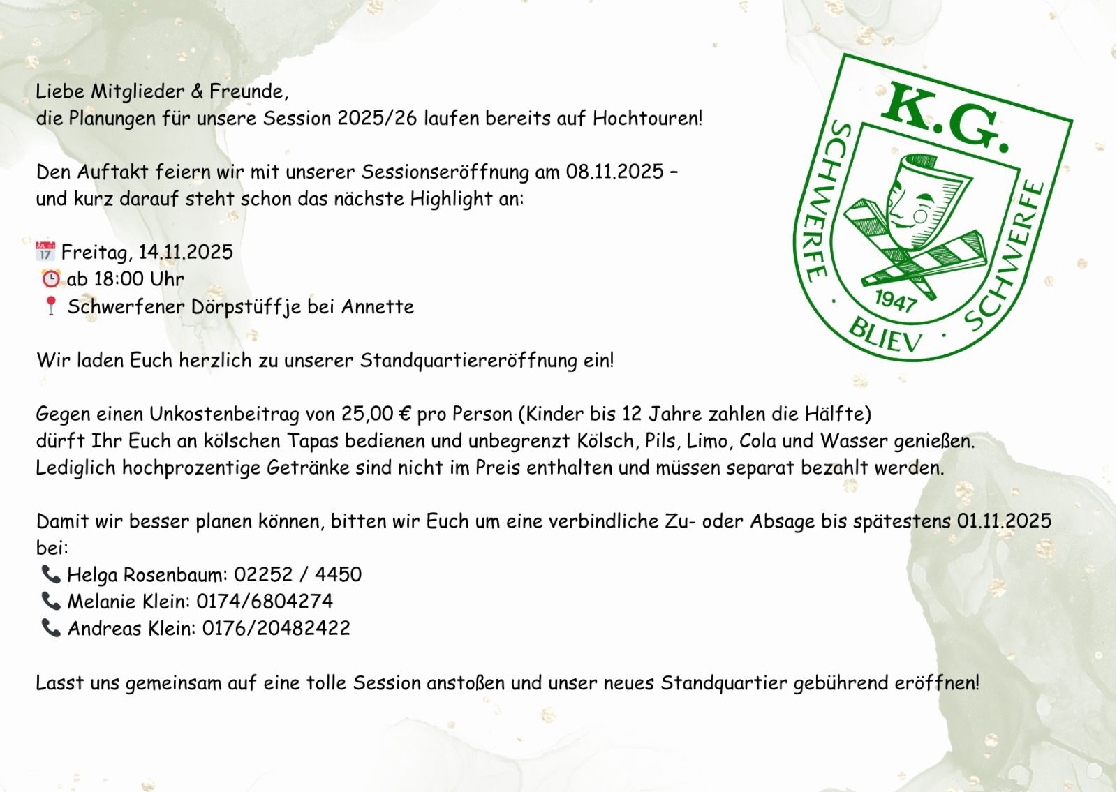 Herzlich Willkommen auf unserer Internetpräsenz der Karnevalsgesellschaft Schwerfe bliev Schwerfe.